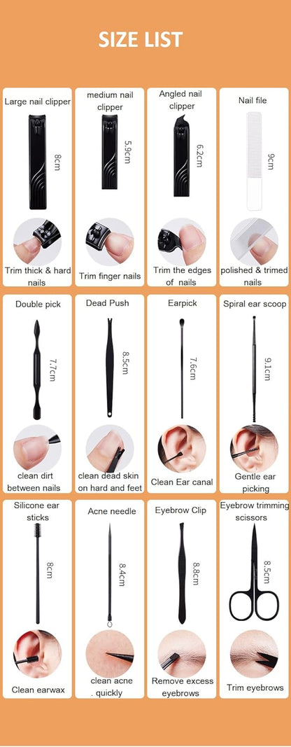 - Complete 12-in-1 Kit: Includes nail clippers, scissors, tweezers, cuticle tools, and more for all-in-one nail and beauty care.