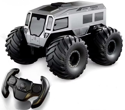 - Amphibious All-Terrain RC Car: Drives smoothly on land and water—perfect for grass, sand, mud, snow, shallow water, beaches, pools, and backyards