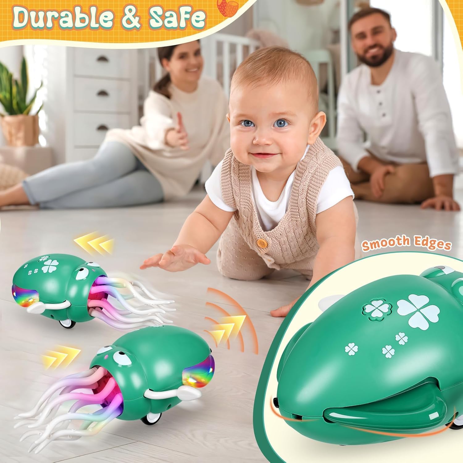 - Obstacle Avoidance Octopus Toy: The Crawling Octopus uses intelligent sensors to detect and steer around obstacles, keeping the fun going without constant interruptions. As it wiggles and changes direction, it captivates kid's attention and encourages them to crawl—perfect for active sensory baby toys.