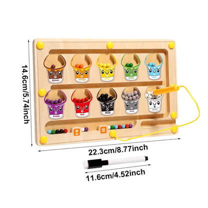 The built-in magnetic pen allows kids to move colorful beads through the maze, matching numbers and colors, encouraging focus, logical thinking, and problem-solving. Made from high-quality natural wood with smooth, rounded edges and non-toxic paint, it ensures safety and durability for long-lasting fun.